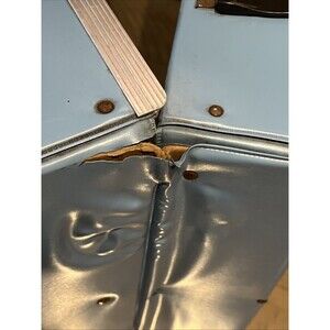 Brown inside is some kind of hard glue. The product is a vintage 1964 Mattel Inc Barbie & Friends doll trunk in a blue case. This large carrying case is designed to store and display Barbie dolls and accessories from the 1960s. With its retro design and iconic Barbie character, this vintage doll trunk is a must-have for collectors of classic Barbie dolls and enthusiasts of vintage fashion items from the 1960s era. The Mattel branding adds authenticity and nostalgia to this charming piece of memorabilia.