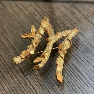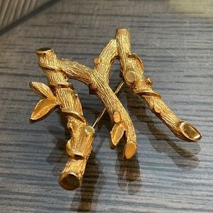 Elegant brooch with a branch design. Features a gold finish. Perfect for adding a touch of nature to your outfit.