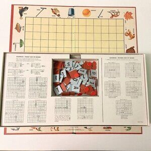 This game is pre-owned and in used condition. It has some wear and marks on the box. It has been counted and is complete. It comes with 100 letter tiles and 36 red counters. Please see all photos for exact game.
