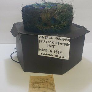 Vintage 1964 Peacock Feathers Womans Hat by Lennie belle. Does come with its original box and receipt. Its feathers are very delicate.