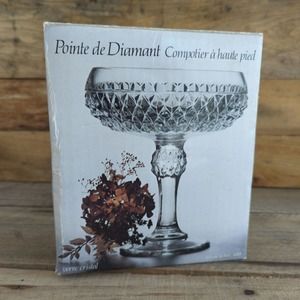 Vintage 1965 - 1990 Diamond Point Clear Tall Footed Compote by Indiana Glass. Made in USA.