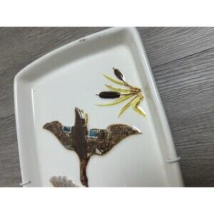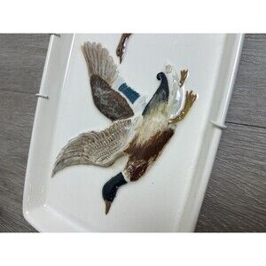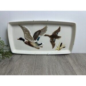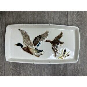 Vintage 1965 Hand Painted Ceramic Tray Wall Hanging Mallard Ducks SMALL CHIPS
