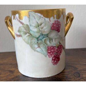 Vintage 1965 Handpainted With Gold Trim Porcelain raspberry planter