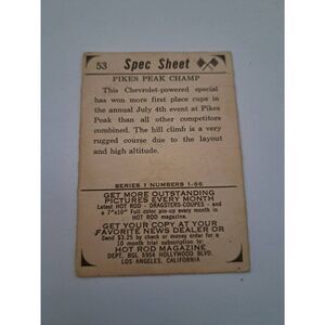Vintage 1965 Hot Rod Magazine Spec Sheet #53 Pikes Peak Champ Trading Card