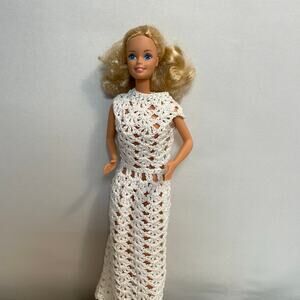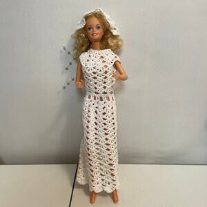 Vintage 1966 Barbie doll Mattel Maylasia bendable white crochet outfit with hat