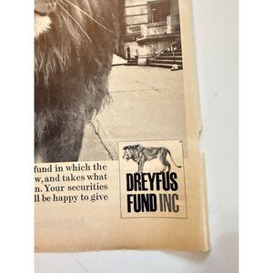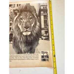 Vintage 1966 Dreyfus Fund Lion Advertisement Print Ad