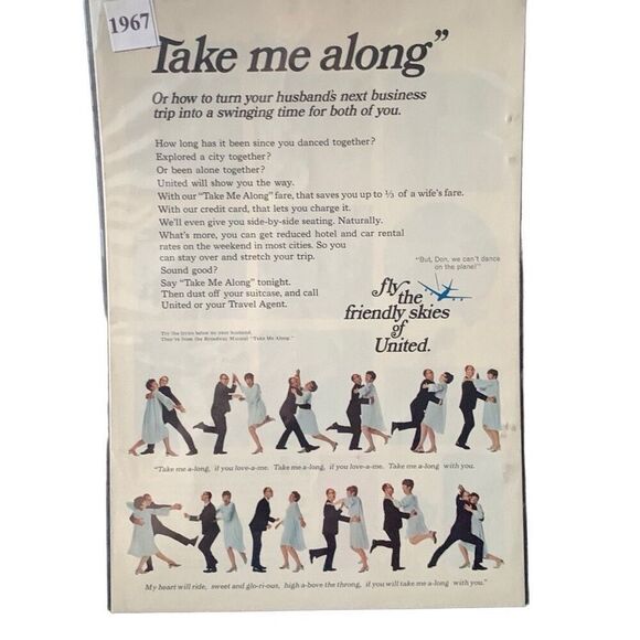 Vintage 1967 United Airlines Take Me Along Ad Advertisement