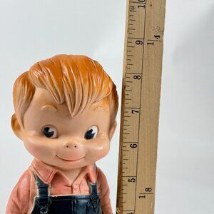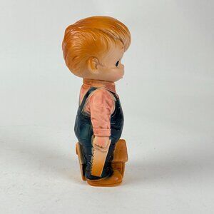 Adorable vintage rubber squeak toy from 1968, crafted by J.L. Prescott Co. This Little Carpenter Boy is perfect for collectors or nostalgic play, featuring detailed craftsmanship and retro charm.