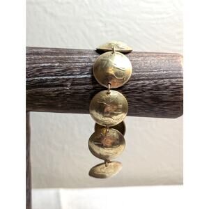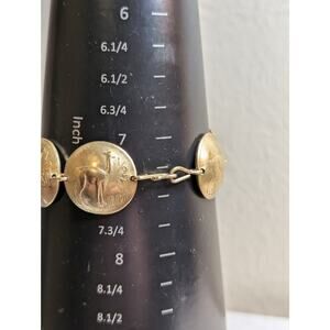 Vintage 1968-1974 Peruvian Llama Sol de Oro Coin Hook Clasp Bracelet. Eight coins. Pre-owned, this coin bracelet is in great vintage condition.