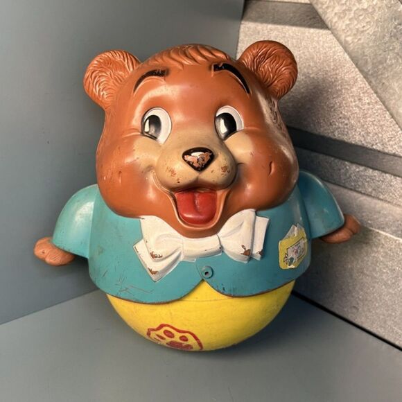 Step back in time with this 1969 Fisher Price Rolling Bear (Roly Poly Bear).