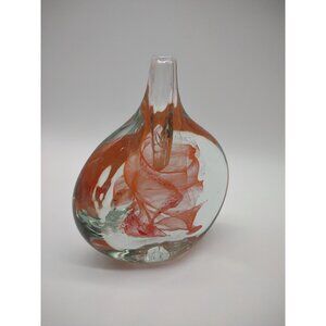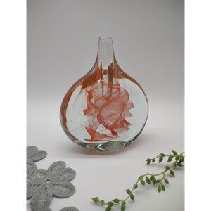 Vintage 1970s 1980s Isle of Wight Ireland Lollipop Orange Swirl Clear Art Glass Bud Vase by Michael Harris.