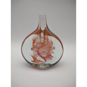 Vintage 1970 80s Isle of Wight 6" Art Glass Orange Swirl Lollipop Bud Vase, READ