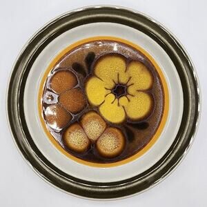 Add a touch of retro elegance to your dinner table with this set of plates that feature beautiful yellow & orange flowers and green border in a glossy finish
