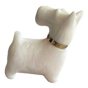 This charming Scottie dog cologne bottle, crafted by Avon, is a delightful piece of vintage decor. Made from white milk glass, it holds a nostalgic scent of Unforgettable cologne. Perfect for collectors or as a unique gift, this little dog stands as a testament to timeless beauty and elegance.