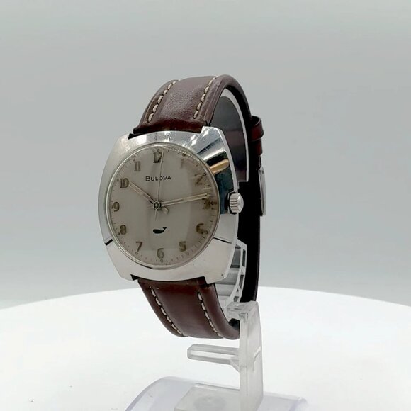 Good, overall condition for its age. Running, but we dont know the last time it was serviced. This means, it can run unreliably, start or stop and timekeeping is not guaranteed. There are scratches on the case. There are scratches on the crystal. There is light discoloration on the dial. The band is not original. Bulova Sea King in overall fair shape showing light scratches only. Not keeping time with low amplitude.