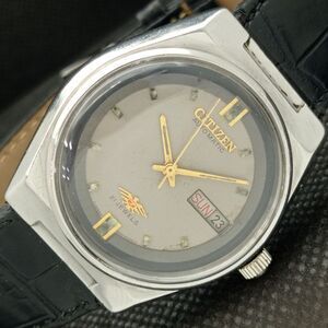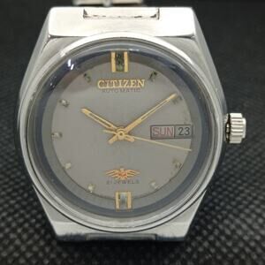 Vintage 1970 Citizen Automatic Mens Silver Watch W/daydate & Gold accents