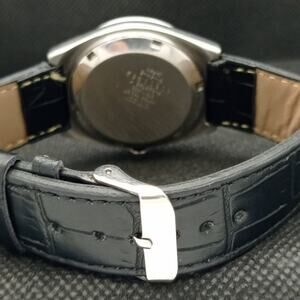 This watch has a stainless steel case in great condition with almost no flaws. The face features Gold accents on a Gray Face giving an awesome vintage look overall. It also has a date function!