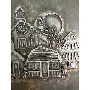Vintage 1970 Cookie Tin Pewter Winter Night Gingerbread Design Metzkem 7.5"x3". Condition is Used. Shipped with USPS Ground Advantage.