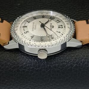 Vintage 1970 Fortis Manual Mens Silver Watch W/Leather Strap & Black accents