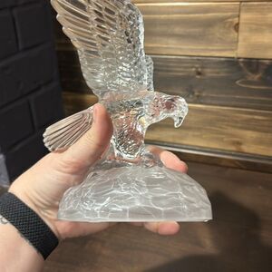 Vintage 1970 Leaded Crystal D' Arques Eagle w Fish Sculpture Statue Paper Weight