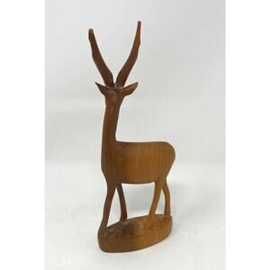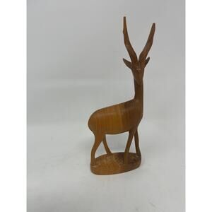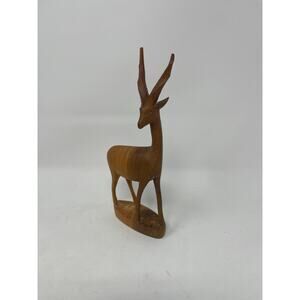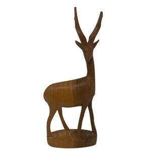 Vintage Mid Century MCM Wood Hand Carved GAZELLE Deer Elk Figurine 8" Tall