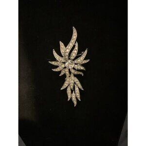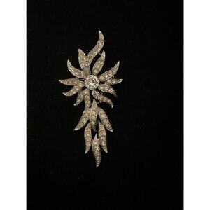 Vintage 1970 Sarah Coventry Rhinestone Starburst Brooch Silver-Tone Metal