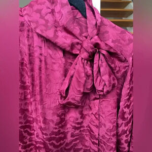 Vintage 1970s Yves Saint Laurent plum wine silk jacquard blouse