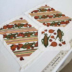 Vintage 1970/1980s Set Kitchen Terry Hand Towels/WashCloth-Mushrooms-Vegetables