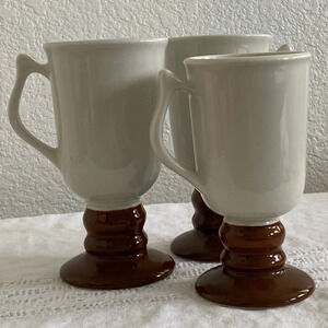 Lot of 3 Vintage Irish Coffee Mug Cup Hall 1273 Ceramic White & Brown Footed Pedestal