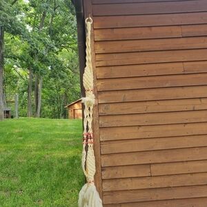 Vintage 1970's 73" Cream Macrame with Beads Several Plants Hanger