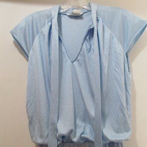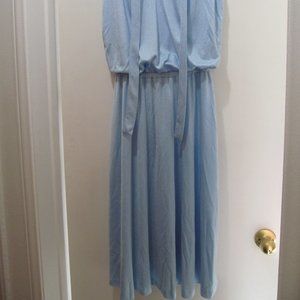 Vintage 1970s 80s Dress Retro Sears Turquoise Blue Polyester