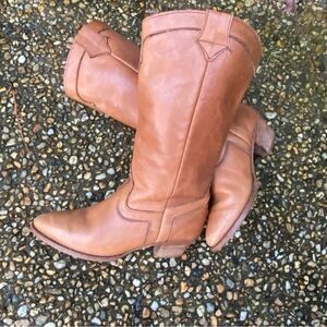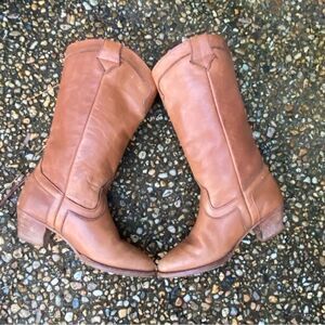 Great vintage cowboy boots in lightly distressed but excellent vintage condition. 2 inch heels. 13 inches tall. No makers name found.