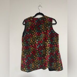 Vintage 1970s Aladdin Multicolor Floral Carpet Tapestry Long Vest Hippie Boho