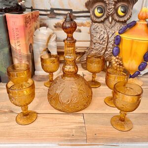 Whether you're a collector of vintage glassware or simply looking for a unique gift, this Amber Glass Decanter Set is sure to impress. Its rich amber hue and classic design are a nod to the sophistication of the 1970s, making it a must-have for any vintage enthusiast.