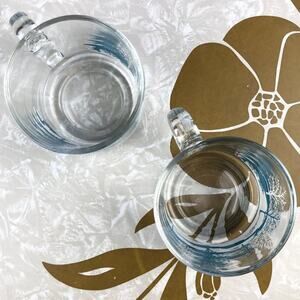 Vintage 1970's Anchor Hocking Blue White Winter Tree Glass Coffee Tea Mugs Cups