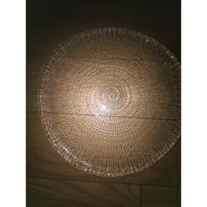 Vintage 1970's Arcoroc Spiral Ammonite Fossil Textured Clear Glass Platter
