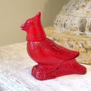 This cardinal is a gorgeous bright red color. It has a glass body and a plastic head.