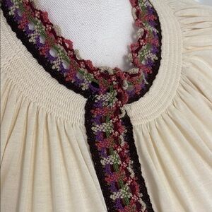 Vintage 1970s Ayers Elegant Cream Embroidered Long Sleeve Dress Size XL