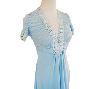 Vintage 1970s Baby Blue Lace Maxi Empire Waist Dress