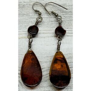 Vintage 1970s Baltic Amber Sterling Silver Earrings