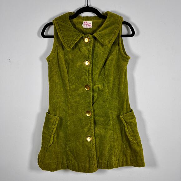 Vintage 1970s Bardinella Designs Terry Cloth Vest Olive Green Cover Up Button Up