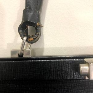 Very good pre-owned condition. Leather is cracked and worn off in a couple spots on the strap and in the bottom corner. Otherwise in great condition. Please see photos.