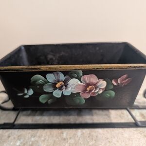 Vintage 1970s Black Tole Handpainted Cachepot Footed Planter Box Sleigh Metal. Good vintage condition. Evident signs of use. See photos for details. *No trades.