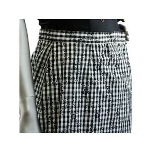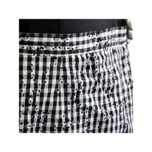 Vintage 1970s Black White Gingham Skirt with Black Flocked Flowers Medium