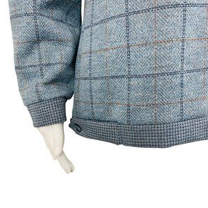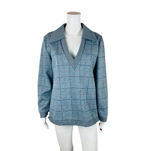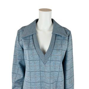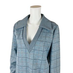 Vintage 1970s Blue Plaid Polyester Top Deadstock Deep V-Neck B 43"