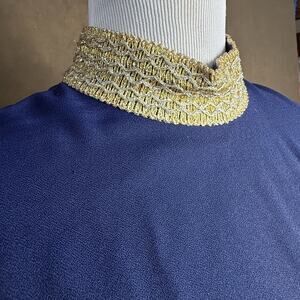 Vintage 1970s Blue Wide Leg Jumpsuit Gold Trim Disco Evening Outfit S