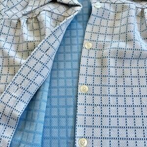 Vintage 1970s Blue and White Gingham Plaid Button Down M/L