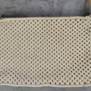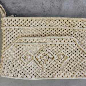 Vintage 1970's Bohemian Macrame Zip-Up Clutch Purse with Pockets Cream Ivory