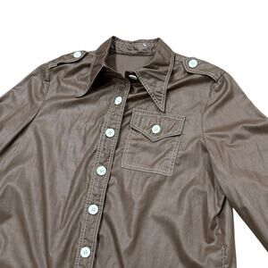 Vintage 1970s Brown Button-Up Shirt Western Mod Disco Style / Medium -