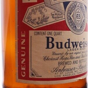 Vintage 1970s Budweiser Empty Collectable Amber Bottle One Quart Bottle Large
